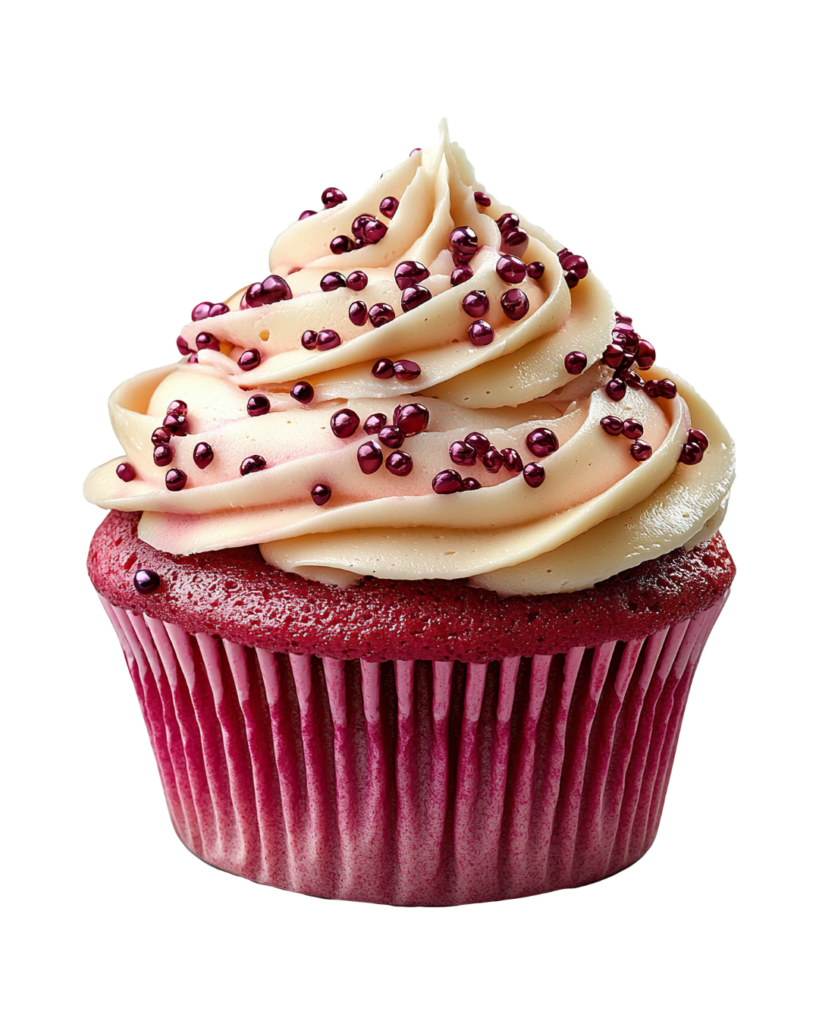 A red velvet cupcake made with real red velvet batter (beet juice instead of food colouring) with delicious, melted white chocolate chips, topped with a creamy, refreshing white ganache. A new take on a classic flavour.